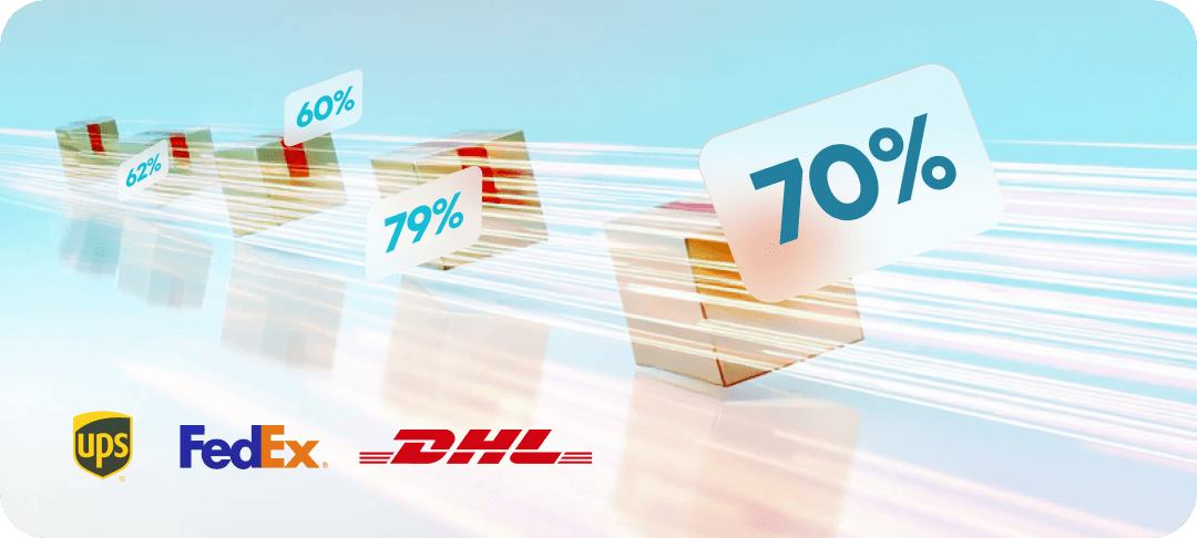 Pre-negotiated enterprise rates with DHL, UPS, and FedEx, no volume minimums required.